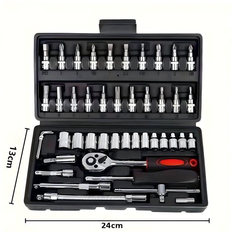 🧲 A solução completa para todas as suas manutenções: Jogo de Chave Catraca com 46 peças! 🛠️✨