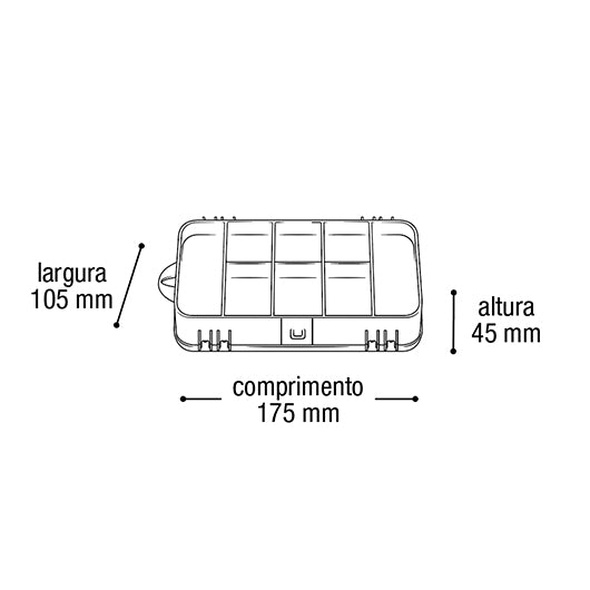 O estojo mede 175mm x 105mm x 45mm, sendo compacto e fácil de transportar.