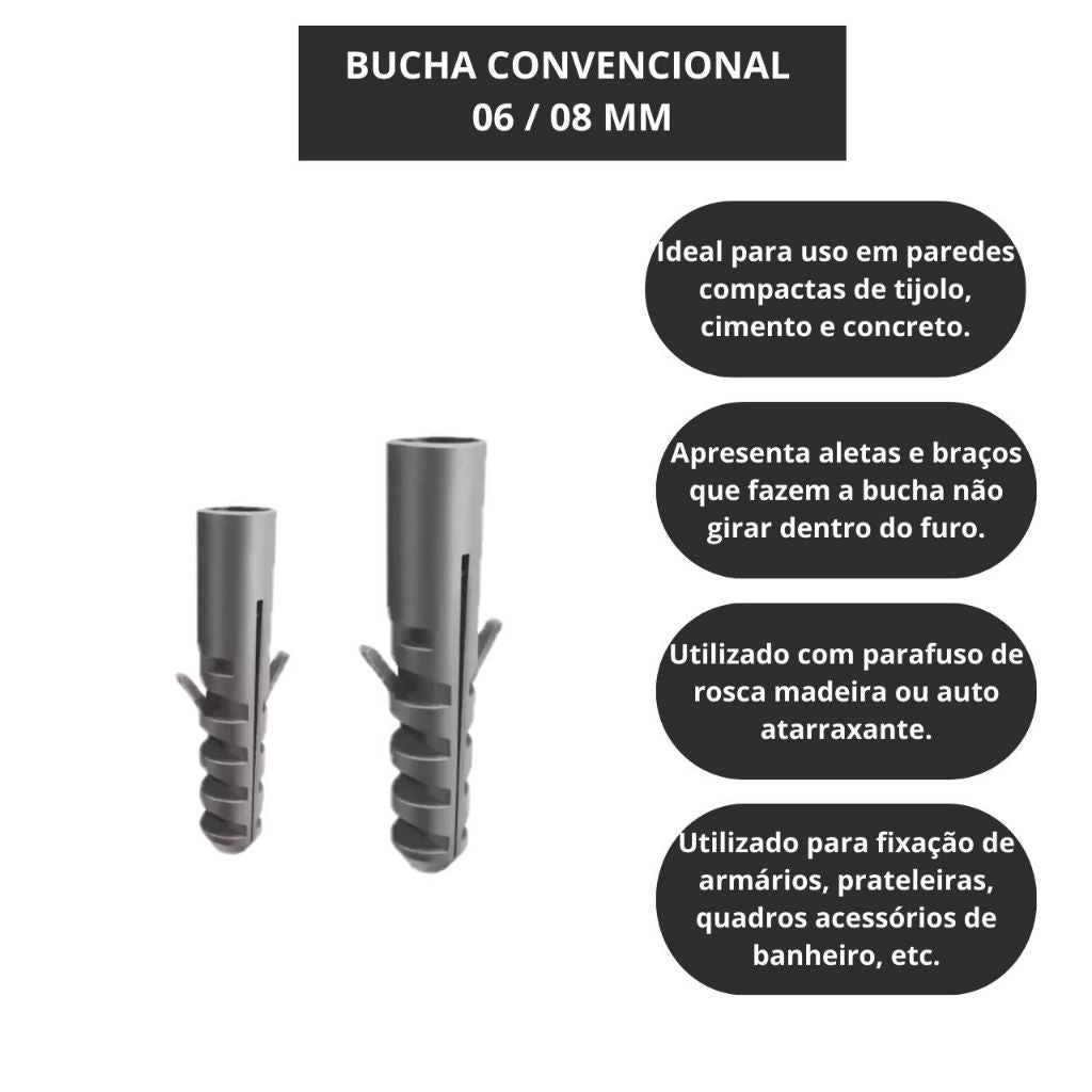 - Variedade de tamanhos: Parafusos e buchas em diferentes dimensões para atender diversas necessidades.